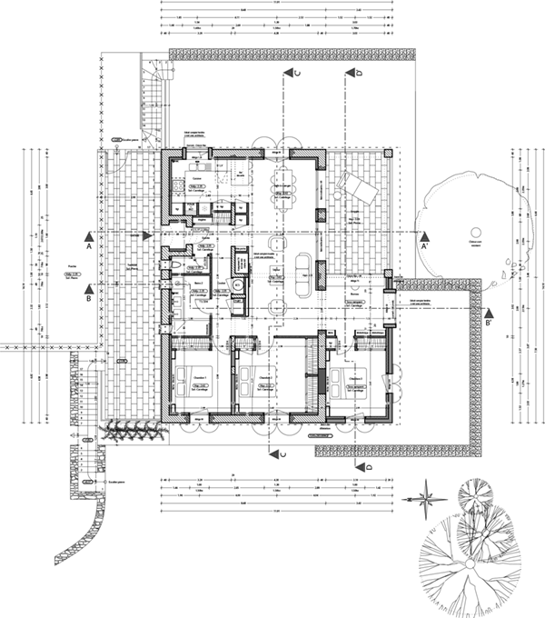 Les deux appartements en rez-de-jardin d’une surface de 62 m2 s’ouvrent sur une terrasse privative et un jardin d’agrément (un à l’est, l’autre à l’ouest).
